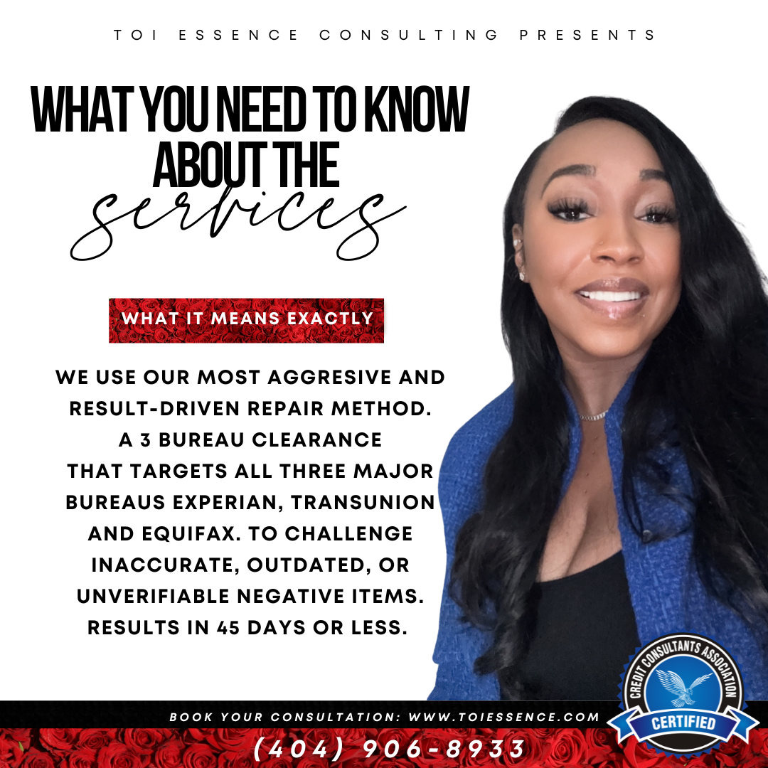 Our Most aggressive results-driven repair method. This is a sweep that targets all 3 major bureaus EX,TU, and EQ to challenge inaccurate, outdated or unverifiable negative items. Aimed to achieve deletions in 45 days.
